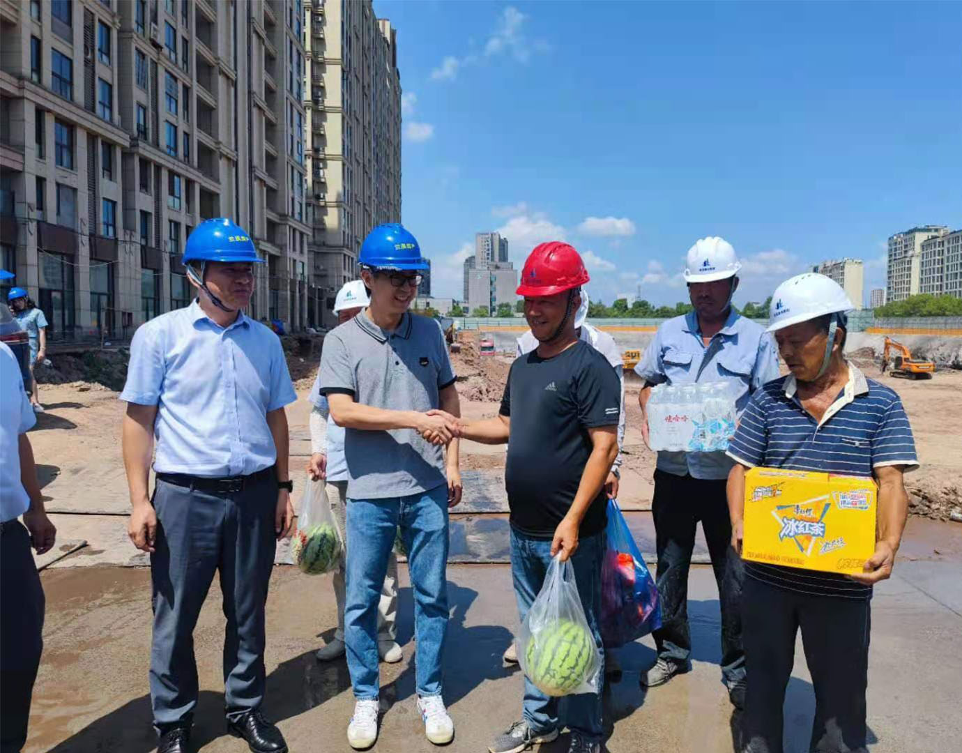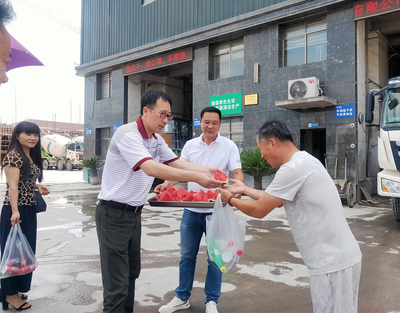 活動中,領導們親臨生產一線,把清涼物資送到員工手中,把關懷慰問送到了員工的心坎,向員工的辛勤付出和默默奉獻表示了感謝和敬意。員工們激動地接過一瓶瓶飲料、一塊塊西瓜,露出了發(fā)自心底的笑容。傅融總裁關切地叮囑大家在保證安全生產的同時,還要注意自己身體健康,防止高溫中暑。工會主席邵建根強調,各分工會要切實落實好防暑降溫措施,備齊防暑物資,科學合理地安排作息時間,適當避開高溫時段作業(yè),把員工的人身安全放在第一位。