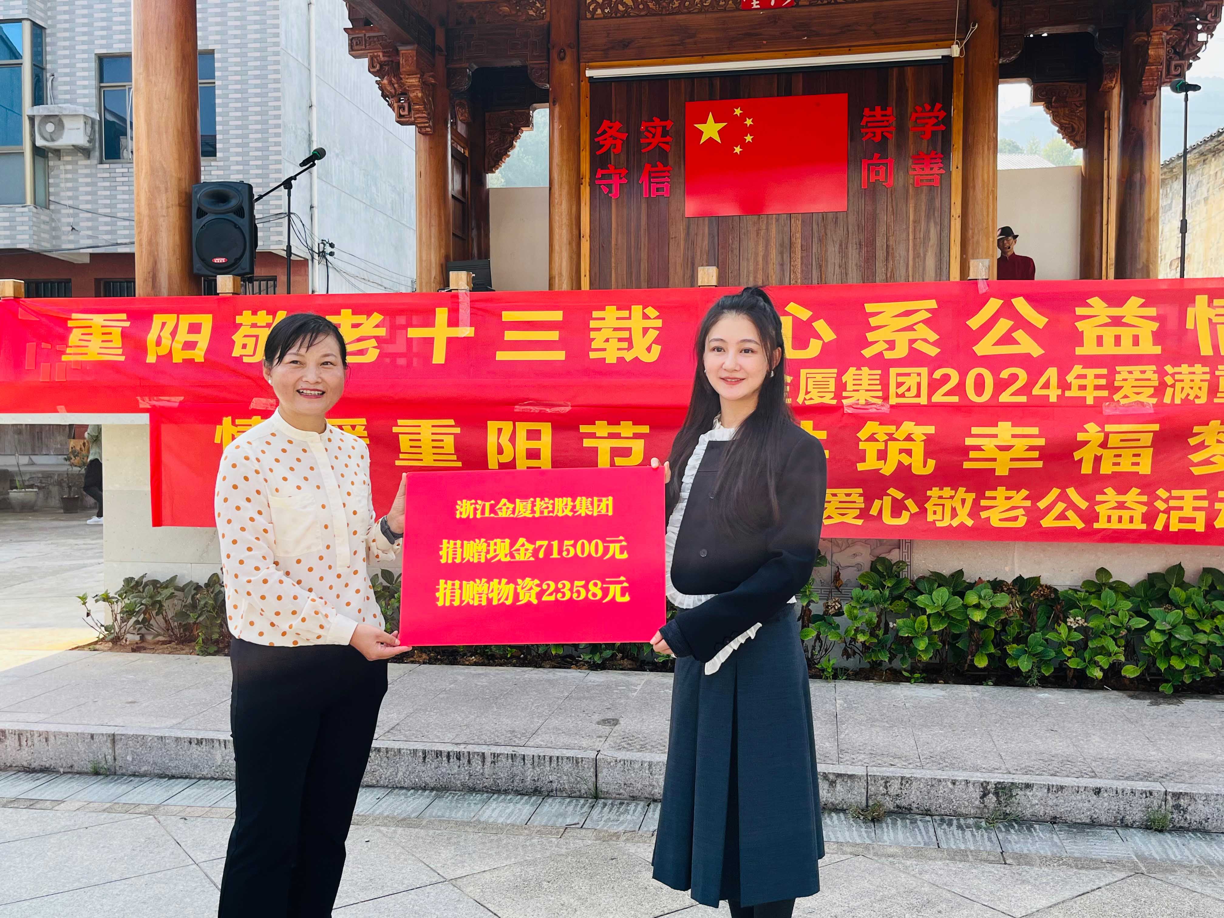 在2024年重陽節(jié)即將來臨之際,為進一步弘揚中華民族尊老敬老的傳統(tǒng)美德,展現(xiàn)企業(yè)的社會責(zé)任感, 10月10日上午,金華市政協(xié)委員、金廈集團董事長蔣晨虹率集團高管及各條線負(fù)責(zé)人一行再次前往金東區(qū)嶺下鎮(zhèn)摩訶村,開展“情暖重陽節(jié),共筑幸福夢”重陽慰問活動,為村里老年人和困難家庭送上慰問金、慰問品,并通過豐富多彩的活動為大家送上節(jié)日的美好祝福。這也是金廈集團連續(xù)第13年開展重陽節(jié)助老公益活動。