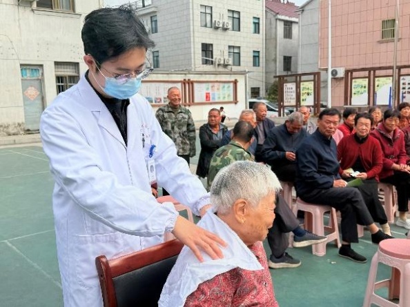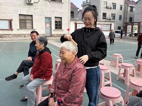 物資表心意,服務(wù)更暖心?;顒?dòng)現(xiàn)場(chǎng)專(zhuān)門(mén)設(shè)置了公益理發(fā)、健康義診、推拿服務(wù)等志愿項(xiàng)目,由醫(yī)生和志愿者們?yōu)槔先颂峁┵N心服務(wù),現(xiàn)場(chǎng)氣氛溫馨而有序。87歲的章秋玉老人家在推拿醫(yī)生按完肩頸后,紅了眼眶:“年年都想著我們,真是和家里人一樣親。”?